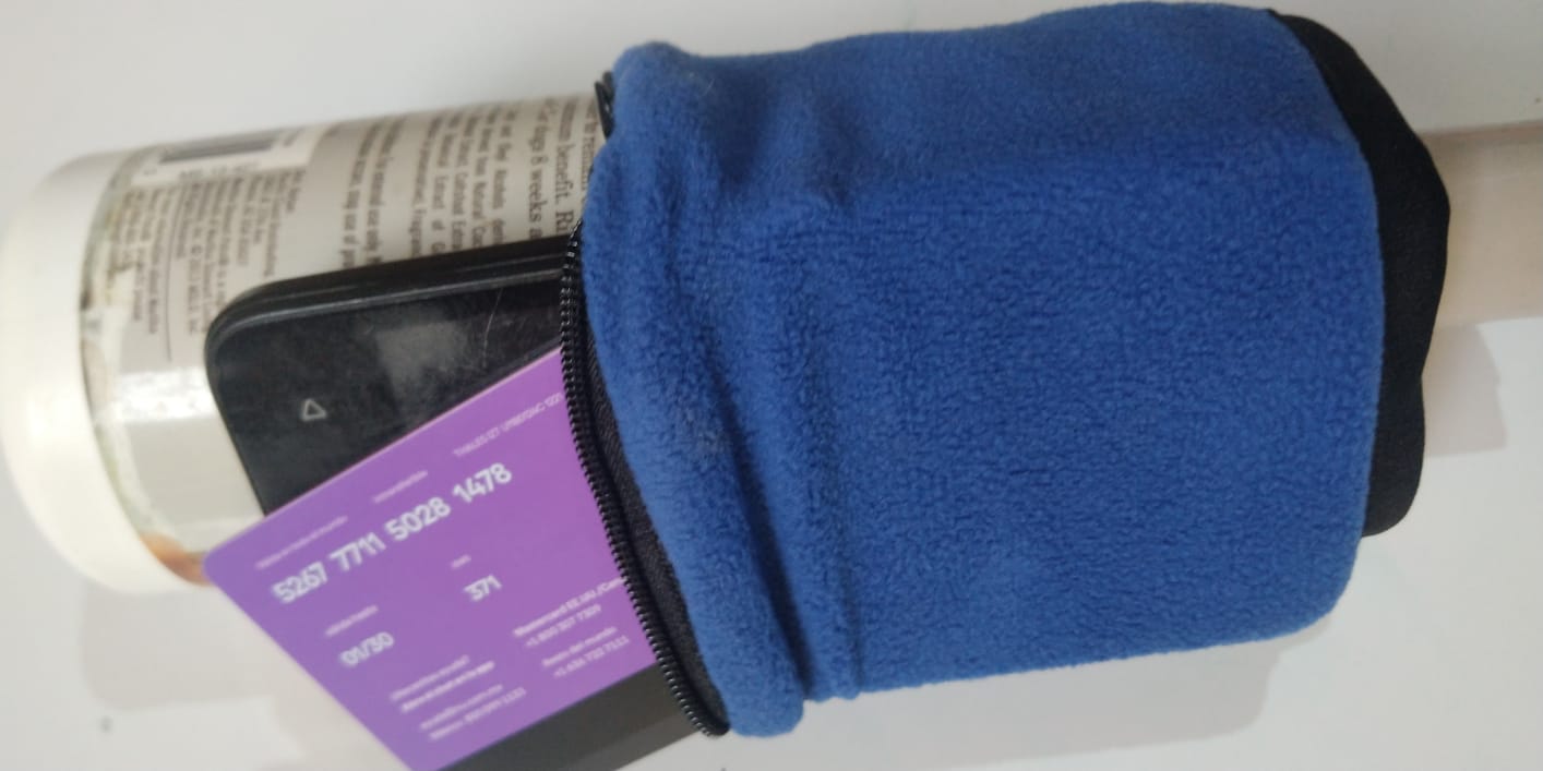 Monedero o tarjetero de muñeca en brazo, ideal para realizar actividad física o mantener una adecuada movilidad sin perder de vista nuestras pertenencias.